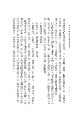 即為顯此損減沉、掉善巧方便,故次說言策心持心。 作意策練其心,若掉舉隨煩惱生時,即以內證略攝門制持其心,爾時名為發起正勤。 損減沉沒、掉舉,發起正勤。所以者何?若沉沒隨煩惱生時,為損減彼故,以淨妙等 、捨相作意等中,若由止等相作意,不顧戀所緣境,純修習對治,爾時名策勵。為欲 勤及所依止。所依止者,謂欲,樂欲為先,發精進故。正勤者,謂策勵等。於止、舉 境,第四正斷緣已生能治法為境。如經所說,應廣配釋。 斷已生惡不善法,樂欲生故,第二正斷緣未生所治法為境,第三正斷緣未生能治法為 如其次第,能證得身、受、心、法離繫果,由此修習,漸能遠離身等麤重故。 生涅槃怖,永遠離故。由法念住趣入道諦,為斷所治法,為修能治法故。又此四種, 以樂等諸受是和合