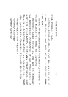 、獨覺、諸佛妙法所依相故。如善法真如,當知不善法真如、無記法真如亦爾。 倒所緣性故。何故真如名為勝義?最勝聖智所行處故。何故真如名為法界?一切聲聞 雜染所不行故。何故真如名為無相?以一切相皆寂靜故。何故真如名為實際?以無顛 真如?謂彼自性無變異故。何故真如名無我性?離二我故。何故真如名為空性?一切 善法真如、無記法真如、虛空、非擇滅、擇滅、不動及想受滅。 六識界及意界。 界、身界、觸界及意界一分。受薀、想薀、行薀即法界一分。識薀即七識界,謂眼等 等意識?謂依意緣法,了別為性。