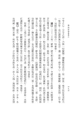 有增減,隨其水業,所作各異,少分依持水族生命。若入大海,無別所依,水無差別 任運無生法忍、妙觀察智相應平等若心若捨,故不能住受用和合一味事智。 相應之心平等受捨,或復行捨,故不能住受用和合一味事智。 空所顯真如、無生法忍,有見道斷差別執故,未離自他差別二想,未得無漏平等性智 增上力故,令彼轉識亦同變現,雖各受用,而謂無別。如是地前菩薩、二乘,未證二 等和合福業增上力故,令彼諸天阿賴耶識變現此林,同處同時,同一相狀。由此雜林 皆同上妙無我、我所,和合受用。能令平等,和合受用,故名雜林。此由諸天各修平 苦 心,而能住捨受用和合一味事智。 一味事智。若已證得無生法忍,遣二想故,得平等心,遂與聲聞、獨覺差別,由平等 平等之心、平等之捨,乃與