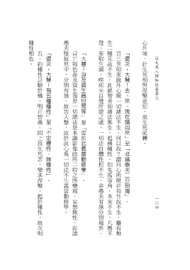 五、約種性以驗於機,明正智義。因上畏生死苦,樂求涅槃,起於種性,故次明 「復次,大慧!有五種種性」至「不定種性、無種性」。 言正報色身及資生器界一切諸法是本識影像能所二取之所變現,妄想無性,而諸 「大慧!身及資生器世間等」至「汝於此義當勤修學」。 言三世如來說外心現一切諸法不生。何以故?謂自心所現非有性故不生,離有無 「復次,大慧!去、來、現在諸如來」至「非諸愚夫二分別境」。
