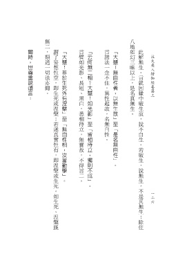 爾時,世尊重說頌言: 謂了妄想性空,即生死成涅槃;若迷真實性有,即涅槃成生死。如生死、涅槃既 「大慧!非於生死外有涅槃」至「無自性相,汝當勤學」。 言譬如光影、長短、黑白,悉相待立,無實故,不得言二。 「云何無二相?大慧!如光影」至「皆相待立,獨則不成」。 言諸法一念不住,異性起故,名無自性。 「大慧!無自性者,以無生故」至「是名無自性」。 此解無生。言就因緣中破生故,說不自生。若破生,說無生,不是真無生;除住
