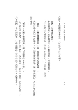 由了諸法唯自心現,即知生本無生,故龍勝云:「諸法不自生,亦不從他生,不 「佛言:大慧!無有相違」至「見其無性本不生故」。 大慧因佛先說一切法無生,今又謂不實速如電,說一切法如幻,故言世尊前後所 「爾時,大慧菩薩摩訶薩」至「將非所說前後相違」。 上二句頌非幻無有相似,故說一切法如幻。下二句頌上答文。 非幻無相似,亦非有諸法,不實速如電,如幻應當知。 爾時,世尊重說頌言: