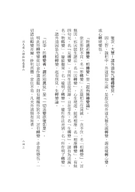 切諸法轉變亦爾,妙明真體,常住不易,凡夫外道無有知者。 。諸外道因是九種轉變,起有無見,生轉變論。 名「物轉變」。緣能顯果,名「緣明了轉變」。緣所作法差別,名「所作明了轉變」 四句見,名「見轉變」。言所生法從冥諦、自在等生,名「生轉變」。諸有為法滅, 無因、邪因能生諸法,名「因轉變」。心生境起,能所相應,名「相應轉變」。有無 或心轉境變也。