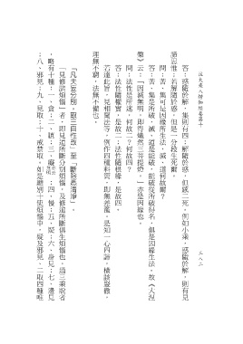 「見修諸煩惱」者,即見道所斷分別煩惱,及修道所斷俱生煩惱也。通三乘說者 「凡夫妄分別,取三自性故」至「斷除悉清淨」。 若達此旨,見相聞法等,例作四種料簡,即無差濫。是知一心四諦,橫該豎徹, 答:法性隨權實,是故二;法性隨根緣,是故四。 問:法性是所迷,何故二?何故四? 答:苦、集是所破,滅、道是能破,能破從所破得名,俱是因緣生法。故《大涅 問:苦、集可是因緣所生法,滅、道何故爾? 答:惑隨於解,集則有四;解隨於惑,但感二死。例如小乘,惑隨於解,則有見