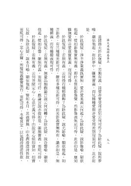 於此復疑:若無有義,云何世間定心、心法有義可得?由說定心能如實知,如實 於此復疑:若無有義,無量品類戲論言說云何而轉?為除此疑,說谷響喻,顯依 於此復疑:若無有義,云何得有種種識轉?為除此疑,說光影喻,顯依他起。如 於此復疑:淨不淨業義既實無,愛非愛果義云何起?為除此疑,說影像喻,顯依 是諸愚夫於此復疑:若無有義,諸愛非愛受用差別云何可得?為除此疑,說所夢