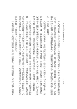 而無法體,不應道理。以上皆應有量。 所例其色法?心、心所亦不待助伴方能滅。今論主云:此差別功能不可得,徒虛有言 色等中火為滅緣?外人伏救云:心、心所生及色生時,各有別別功能,如何以心、心 者,火等為助伴方能滅。今論主於心、心所任運滅中,更無物為助緣故滅,如何乃言 任運自滅,無別滅相,而言法外別有滅相,畢竟不可得故,不應道理。前解為勝。 滅相者,離彼大滅相法外,而更有小滅壞自性」者,不可得故,不應理。又解:以法 相自性別有」者,離彼法外別有滅,不可得故,不應理。若別救云「別有小滅滅於 生,不生故,無斷壞。 體生時即有滅相,便成相續斷壞過失。以諸法體無滅相故,諸生時即有滅故,法應不 」等者,若滅相為滅因,如火等與薪俱滅,故不得為緣,