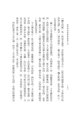 或善惡,或色心等。此一比量正當此文,本比量也。 汝立生滅兩相同共一因,我今難汝:今應生滅兩相不同一因,其相異故,如苦樂等, 有因故,等是有為故,因猶如生相。若爾,汝以有為故,因乃與有法自相相違也。又 不由因,後不滅故,猶如虛空。本比量也。亦即更破云:汝有因之滅,應非是滅,以 。此是遮比量也。 為故,猶如生相。又破大乘及經部師云:滅若無因,應非有為,以無因故,猶如虛空 故,尋即滅壞。然薩婆多以其比量立道理成立滅亦有因,立比量云:滅必有因,是有 因,然即以生因亦是滅因。今大乘及經部等,唯生有因,滅即無因,是故生已更無因 心法及燈光等。 許事為證,故言「現可得故」。應立量云:眼等諸色,纔生即滅,是有為故,如心、 「纔生即滅」也。然彼