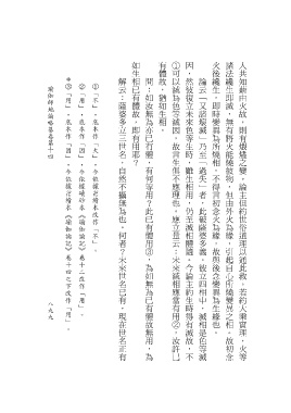 如生相已有體故,即有用耶? 有體故,猶如生相。 因,然彼復立未來色等生時,雖生相用,仍至滅相體隨。今論主約生時得有滅故,不 火後纔生,即時變異為所燒相,不得言初念火為緣,故與後念變異為生緣也。 諸法纔生即滅,無有將火能燒彼物,但由外火為緣,引起自心所燒變異之相。故初念 人共知薪由火故,則有煨燼之變。論主但約世俗道理以通此救。若約大乘實理,火等