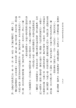過去時,根在未來,說此當入過、現之境,故言未來,不緣未來也。此後解准同前釋。 耶。「八色等根在未來,非未來為義」者,亦以根境俱在未來世故得。然境入現在、 現在無識之根與色俱入過去,不能緣過去境。 在中,唯緣現在故,假設流過去時勢力羸故,在未來等故,不說緣當世,如前釋。 。今解者,且如無色根在現在,通緣三世,在過未世義,說各緣三世境。苦根等八現 次境後亦入過去時,名過去,非過去為義。然現在同緣者,同入過去,過去亦緣過去 當世有義境,然言無者,且如八根現在緣境,此根在現在,境入過去,此根 名無漏,體是界繫法。上下文無違。又無漏苦根者,為無漏導故,名無漏。憂根不爾。