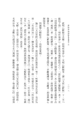 名所治有。金剛心已前道等名生已無滅,數數起故,現能起故;後金剛心時一切惑無 有生故,當知有所對,故非常。 有生」者,謂所治之惑若無,無間道與惑俱滅已,有解脫道生。此所治、能治,有滅 ,生已無滅」者,謂所治之惑若有,無間道生已,與惑俱不滅也。「所治若無,滅已 常。「若法所治」下,簡有為非常。一解云:若法者,即一切通名法也。「所治若有 解脫果也。 後雜生。此是世間心解脫果,能不染相應及間生,非離緣縛等。若離者,即是無漏心 。謂「相應」者,相應縛也。「相雜」者,緣縛也。又相應者,俱時起惑;相雜,前 「即慧解脫增上力故」,明心解脫果。謂由前世間慧力故,其心於相應縛及緣縛中出 能取了別」,明所染淨心,即是色等境界能取之心。「彼世間慧心解脫果」者