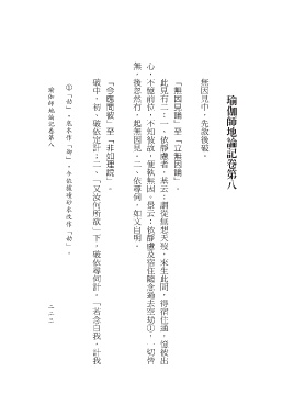 無,後忽然有,起無因見。二、依尋伺,如文自明。 心,不憶前位,不知彼故,便執無因。景云:依靜慮及宿住隨念過去空劫 破中,初、破依定計;二、「又汝何所欲」下,破依尋伺計。「若念自我,計我 「今應問彼」至「非如理說」。 此見有二:一、依靜慮者,基云:謂從無想天歿,來生此間,得宿住通,憶彼出 「無因見論」至「立無因論」。 無因見中,先敘後破。 瑜伽師地論記卷第 ① 「劫」,底本作「卻」,今依據磧砂本改作「劫」。 瑜伽師地論記卷第八 八 2 2 2 3 3 ① ,一切皆