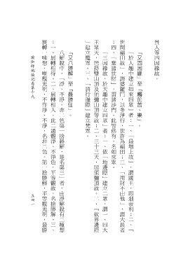 八解脫中,「淨、不淨、非二色第一捨勝解,是名第三」者,由淨解脫有三種想 「又八勝解」至「最勝住」。 「三因緣故,於天趣中建立四眾」者:一、依「地邊際」建立二眾,謂一、四大 「於人趣中建立如來四眾」者:一、「最增上故」,謂國王,即剎帝利;二、「 「又四因緣」至「觸於苦、樂」。