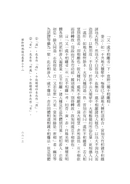 為諸膠等攝為一聚,此非相涉入一處不離法,亦非同體相連相雜不相離法,但是別體 如是。餘大同造,亦復如是。言「又若有聚」乃至「當知所餘是一聚相」者,麻豆等 體各別,然更相涉入遍篋量,互不相離。諸大種及所造色體別同量,更相涉入,亦復 而得轉故,假設而言各有功能,據別處所,別得轉故,故知同處互不相依也。 望別造色者,即相離也。彼大種同一處所不相離者,異大相望,非所造色,互不相依 一處所,如地大種與餘水、火等大種同造一色,當知亦有同一處所不相離者。若大相 造諸色,以無用故,不自容。於非不共大種聚中,大種極微如所造色量,更相攝入同 諸地大種色,然地大不自容地大,故無有一處不相離諸地大種色。以地大不因地大而