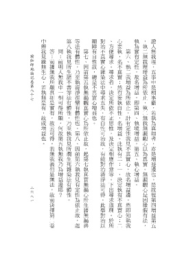中辨我見緣無生心,若執無是有,故成增益也。 第八執我見所生諸不善等法有體性,乃至執我見所潤生死雜染法有體性。 等法有體性,乃至執清淨涅槃有體性也。第八、因前第六執我見有定性為依止故,起 顯障有自性故,總是不真實心增益也。 對治不真實心雜染法中尋求五失,有自性可治故,有能對治清淨法可得。此舉對治以 、方便尋求。尋求者,決定所依不正思惟,及決定相應作意等。下出尋求道理。於所 心妄執,名不真實;然有妄執自性,名增益。此執有二:一、決定執有不真實心;二 執為實有定性,故名增益。即第四、執境增益,第五、執心增益。 ,執二無我理增益為所依止,執二無我無漏觀心以為真實。無漏觀心是因緣假有法, 證人無我理,五事中是相事攝,若執為真如者,亦