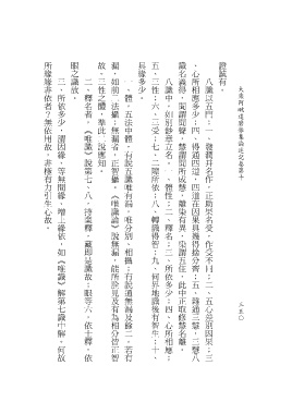 三、所依多少,謂因緣、等無間緣、增上緣依,如《唯識》解第七識中解。何故 二、釋名者,《唯識》說第七、八,持業釋,藏即是識故;眼等六,依士釋,依 一、體,五法中體,有說五識唯有漏,唯分別、相攝;有說通無漏及餘二。若有 八識中,如別鈔章立名。一、體性;二、釋名;三、所依多少;四、心所相應; 八識以五門:一、發潤并名作,正助果名受,作受不同;二、五心差別因果;三