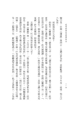 世親《攝論》第一「五同法」中,「彼五識身有五根,阿賴耶識為俱有依;此亦 五識有漏,何以得知亦依第八者? 如無性《攝論》第一證有第七中,言「謂若不說有染汙意,義不符順」等。此中 何故得知以七為依? ① 故。世親《攝論》第四云,五識以意為依,意散亂時,五不生故。准彼,明五以