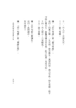 可說心種先生,餘觸等種次第生果。此中比量,易而可知。 論:「勿一有情」至「俱時生故」。 有何過失? 述曰:此即總非。 論:又不可說六果頓生, 十五、論主復難: 十四、外人復云:六果頓起。 述曰:同熏之種,一生果時,餘亦應生,熏習同時,勢力等故,如生果種。故不 論:「亦不可說」至「勢力等故」。 十三、論主復難: 十二、外人云︰次第生果。 成唯識論述記卷第三末 5 4 4 3 3