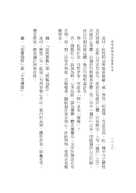 論:「如是自性」至「不可得故」。 述曰:解第三句。此第二句所妄執心外法、我自性差別,體性非有,如龜毛等, 論:「此所妄執」至「所執自性」。 答︰隨能計心,故說為物。心多品故,說為種種,體非種種也。又所計無法亦可 問︰此所計法,自性非有,何故名「物」及名「種種」? 述曰:此性即是所虛妄執蘊、處、界等一切義理,若法若我,此二種中自之體性