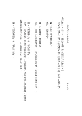 ,此應非彼行等之共相,如色非色共相,與色不異故。 名計所執。彼云︰「由此意趣,假說依他為計所執。」 論:「由此喻顯」至「相待有故」。 述曰:若定異者,應彼行法非無常等,如青非黃,以是異故;不全異者,無常等 論:「無常等性」至「非彼共相」。 述曰:頌言「如無常等性」,等取無我及空等,故無我亦復言「等」。 論:如彼無常、無我等性。 述曰:此問譬喻。 論:云何二性非異不異? 此解第三頌上二句「故此與依他,非異非不異」訖。下釋下第三句。 成唯識論述記卷第九本 1 6 6 6 6 4 4