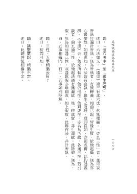 述曰:此總答彼相攝不定。 論:諸聖教說,相攝不定。 述曰:初問可知。 論:三性、五事相攝云何? 四、五事相攝門,有二。五事如別抄解。 述曰:六法如文。《瑜伽》第三有此六法,然無相攝。「皆具三性」者,並可妄 論:「彼六法中」至「緣生理故」。