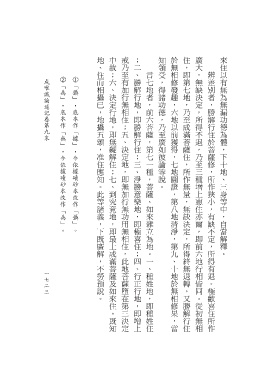 地、住而相攝已,地攝五頌,准住應知。此等諸義,下既廣解,不勞預說。 中故;六、決定行地,即無礙解住;七、到究竟地,即最上成滿菩薩及如來住。既知 戒乃至有加行無相住;五、決定地,即無加行無功用無相住,此地菩薩墮在第三決定 ;二、勝解行地,即勝解行住;三、淨勝意樂地,即極喜住;四、行正行地,即增上 知領受,得諸功德,乃至廣如彼論等說。 於無相修發趣,六地以前獲得,七地圓證,第八地清淨,第九、十地於無相修果,當 住,即第七地,乃至成滿菩薩住,所作無量,無缺決定,所得終無退轉。又勝解行住 廣大,無缺決定,所得不退,乃至三種增上惠住亦爾,即前六地行相皆同。從初無相 來住以有無為無漏功德為體,下十地、三身等中,自