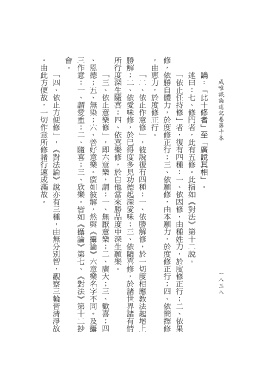 「四、依止方便修」,《對法論》說亦有三種,由無分別智,觀察三輪皆清淨故 「三、依止意樂修」,即六意樂,謂:一、無厭意樂;二、廣大;三、歡喜;四 「二、依止作意修」,彼說復有四種︰一、依勝解修,於一切度相應教法起增上 「依止任持修」者,復有四種︰一、依因修,由種姓力,於度修正行;二、依果 述曰:七、修門者,此有五修。此指如《對法》第十二說。 論:「此十修者」至「廣說其相」。