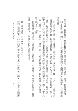 述曰:別指法也。如「無常」宗,是常為異;「所作性」因,非作為異。返顯義 論:謂若是常,見非所作,如虛空等。 此中諸過,或自或他,或全或分,隨其所應,准前思作。第四句小分為正,餘皆 答:但言所立無,因不遍非有,即九句中,異品有攝,除二、八、五,餘六句是 問:說所立無,因已非有,何須復說因遍無耶?說因遍無,已無所立,何須復說