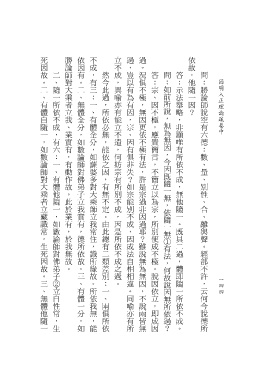 死因故。二、有體自隨一,如數論師對大乘者立藏識常,生死因故。三、無體他隨一 勝論師對大乘者立我、業實有,有動作故。此於業有,於我無故。 依因有。二、無體全分,如數論師對佛弟子立我實有,德所依故。三、有體一分,如 不成,有三:一、有體全分,如薩婆多對大乘師立我常住,識所緣故。所依我無,能 立不成,異喻亦有能立不遣,何妨宗有所別不成,因是所依不成之過。 過,豈以有為有因,宗、因有俱非失?如宗能別不成,因成法自相相違。同喻亦有所 過。況俱不極,無因更依不極有法,許是宗過非因過耶?雖說無為無因,不說兩皆無 依故,他隨一因?