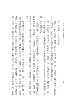 比量難云:「所聞性因非不定攝」宗,「異品無故」因,「如二、八因」喻。又 《理門》難云:「理應四種名不定因,二俱有故,所聞云何?」古因明師不許四 答:因闕同喻,宗義無能可成,亦不返成異宗,由此名為不定;非是定能成一宗 問:舉因能立,立未成宗,無喻順成,其宗不立。宗既順先不立,此因應非不定。 述曰:下指不定相。猶者,如也。夫立論,宗、因、喻能立,舉因無喻,因何所 論:此所聞性,其猶何等?