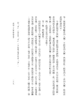 ,立義本欲違害他故。諸立自非他,他不定非,立他非自,自不定非。隨其所應,皆 及共有過,既非能破,何成能立?自比量中諸他不定,他比量中諸自不定,皆非過攝 共有過,非真能立,何名破他?他比量中,若他不定及共不定,亦不定過。立他違他 略不說。以此准前,比量相違亦有四種,論中但說法自相比量。 非宗相返本所諍法。二種差別意之所許,雖意所諍,非言所陳。此三決定相違之因皆 差別相違決定。 等。彼說色等雖非四大種,不能有四大種,然說有性,能有四大,非四大種,故成法