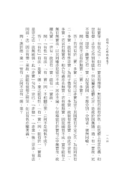 同前。此二因云有德、業故,謂能有彼德之與業,如言有色亦屬著義。 是宗之法,故無兩俱。此「非實」句為一宗已,「非德」、「非業」後二宗法,有法 顯九實一一皆有,故言有一實,能有一一實故。 無有無實故,以其同喻亦犯能立不成,因亦不遍,乍似唯能有於實句之中無實故。欲 多實。若言有無實者,和合句義亦名無實。若有彼無實,因犯兩俱不成,實等能有上 二、多實,故彼有性非實;為如子微等有二、多實,故彼有性是實,由此不言有二、 不須徵,即實、離實之有一實。況復諸因,不應分別。分別者,便無同喻。 空有聲,非空之外別有能有,但是屬著法體之言。是故於因無隨一過。有一實故,更 有實等。有色之言,如有一實及有德等,無別能有而有於色。此色體上有其色義,如