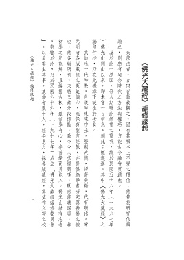 」,以星雲主其事,集學者數十人,經年累月,採各版藏經,冀望作文字之校 ,有鑒於此,乃於民國六十六年(一九七七年)成立「佛光大藏經編修委員會 初學之所能解,且編排古板,雖信學有心,奈苦鑽而莫能入。佛光山諸有志者 也。然各版所刊,未將三藏分段標點,致令今人望經興嘆,既感佛典深奧,非 元明清各版藏經之蒐集編印,既保存聖言經教,亦提供為學者研究與發揚之據 編印付梓,乃在此機緣下誕生於世矣。 )佛光山開山以來,即未嘗一日稍怠,朝此目標邁進。其中《佛光大藏經》之 論之,則應有契合時代之方法與權巧,方能古今融會貫通也。