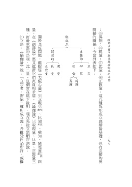 種,而最重要的是現、比二量。這個當在底下說明,現在先從立宗順序地說: 量,在《迴諍論》裏又批評它們底自相矛盾。《瑜伽論》只取現量、比量、正教量三 間接的關係。今當列表如下: ;