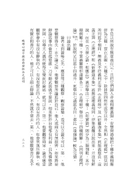有賢正和善巧的人,他才可以上前去辯論,不然就不要去。第三、他要觀察善巧及不 觀察會中有沒有僻執的人,有沒有賢正的人,有沒有善巧的人。如會眾無所僻執,唯 世間,引導天人義利使得安樂而討論底,就可以去。第二、他要觀察時眾。論者應當 辯論底事由會惹起惡感,乃至動武底就不要說。如果對於自他都有利益,且為憐愍諸 要觀察得失。在立論之前,他要觀察所論底於自己、他人或兩方有無損害。如果將要 論》 顛倒難十種,不實義難與相違難各三;《正理經》舉出二十四種倒難;《因明正理門 說。而在《方便心論 義正與《正理經》和《斫羅迦本集》底無道理義相同。招集過難只說出來,並沒有解 所列底不相同。無義及不得義利正等於《正理經》及《斫羅迦本集》底無義墮負。