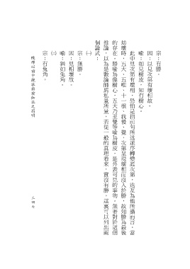 個論式: 推論,以為是數論師底私量所量,若從一般的真理看來,實沒有勝。這裏可以列出兩 的存在。勝喻為像樹心,五大乃至覺等喻為樹皮,是外表可見的事物。無著對於這個 劫壞時,五大、五唯、十一根、我慢、覺,次第呈現壞相而沒入於勝,故知勝為最後 宗:有兔角。 ㈡ 喻:猶如兔角。 因:見相壞故。 宗:無勝。 ㈠ 此中見次第有壞相,恐怕是指前句所述逆序轉變底次第,迭亙為他所攝而言。當 喻:如見樹皮,知有樹心。 因:以見次第有壞相故。 宗:有勝。 陳那以前中觀派與瑜伽派之因明 3 4 4 7 7