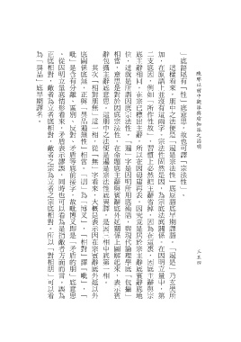 為「異品」底早期譯名。 正底相對,敵者為立者底相對,敵者之宗為立者之宗底相對。所以「對相朋」可以看 。從因明立量底情形看來,矛盾表示謬誤,同時也可以看為是指敵者方面而言。誤為 毗」是含有分離、區別、反對、矛盾等底前接字,故毗博叉即是「矛盾的朋」底意思 底關係底無,正與「異品遍無性」相當。「朋」為「博叉」,「相對」譯「毗」,「 辭包攝主辭底意思。這朋中之法便是遍是宗法性底異譯,是因三相中底第一相。 相當,意思是對於因底宗法性,在命題底主辭與賓辭底外延關係上圖解起來,表示賓 位,這就是所謂因底宗法性。「遍」字是因明所用底術語,與現代論理學底「包攝」 底主辭相同,在宗已標出主辭,所以在因毋庸再表。因究竟是居於宗主辭底賓辭底地 二支底因,例如