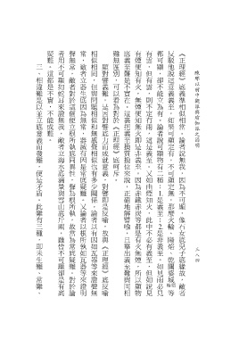 疑難。這都是不實,不能成難。 者用不可顯如蛇耳來證無我,敵者立海水底滴量與雪山底斤兩,雖皆不可顯卻是有底 聲無常,敵者對於這個便立根所執底同異性,聲為根所執,故當為常底疑難。對於論 常,敵者立器生底因為無常,器滅有因是常底疑難。又論者以根所執如瓦器等來證明 相似相同,但與問題相似和無感覺相似也有多少關係。論者以有因如瓦器等來證聲無 難無區別,可以看為對於《正理經》底呵斥。 底義至難是不實在。這裏把義至換質換位來說,正確地解譬喻,且舉出義至難與同相 有煙便知有火,無煙便知無火即是非義至。因為赤鐵赤炭等都是有火無煙,所以顯物 有雲,但有雲,則不定有雨,這是義至。又如由煙知火,此中不必有義至,但如說見 都可顯,卻不能立為有。論者說可顯