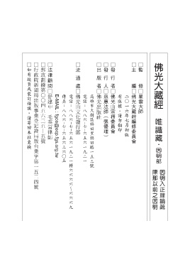舒建中 傳真:八八六 電話:八八六 佛光山文化發行部 電話:八八六 高雄市大樹區興田里興田路一五三號 佛光出版社 慈惠法師(張優理) 佛光山宗務委員會 有版權 二 佛光大藏經編修委員會 星雲大師