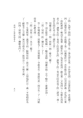 四問:何故六因,體唯有四? 答:生果照果,義用不同,隨類有能,故分三種。立智隔於言、義,不得相從名 三問:何故二因,各分三種? 答:智境疏寬,照顯名了。言果親狹,令起名生。果既有差,因分生、了。同能 二問:何故一因,體分生、了? 答:因正建宗,總苞稱一。喻有違順,別離分兩。至下喻中,當廣分別。 明廢立者。一問:何故一因,喻分二種?