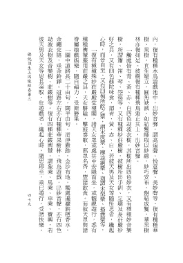 彼天男及天女等思其乘馭,往遊戲者,纔起心時,隨思即至,乘已遊行,受諸快樂。 劫波衣樹及音樂樹、莊嚴樹等。復有四種莊嚴輿輦,謂象乘、馬乘、車乘、寶輿,若 金繩交絡,垂金鈴鐸。道路左右亦有種種華果樹林,飛鳥遊戲,出妙音聲,亦有四色 眷屬嬉戲娛樂,隨自福力,受斯勝果。 種種輿輦服用莊嚴之具,天女駢隘,擊鼓奏歌,爇眾名香,豐諸飲食。而彼天眾與諸 心時,而皆自至。又有四種所飲之漿,謂末度漿、摩達網漿、迦譚末梨漿、播曩漿等。 好之具,又有四色蘇陀味食,謂青、黃、赤、白,若彼天男及天女等隨所思者,纔起 樹,所謂簫、笛、琴、箜篌等,又有種種妙莊嚴樹,彼樹所出手釧、足環及身莊嚴妙 林亦復如是。彼樹復有種種飛鳥遊