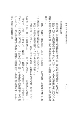 天女皆悉不能瞻其前後。 之,其三十二天於所化頭如次安處,餘諸天眾隨應而住。象王行時迅猶風轉,天子、 七天女,一一天女有七七侍女,一一侍女鳴七七天鼓。而象王所有最勝頭相,帝釋御 一花中有七七臺,一一臺中有七七樓閣,一一樓閣中有七七守衛者,一一守衛者有七 乃現三十二頭,其一一頭各有六牙,一一牙上有七七池沼,一一池沼有七七蓮花,一 ,五護破散,還復來此求戰於我,仁等今時宜施勇力。』 戰力。』 求戰,天中五護破散奔馳,于今還來至天主所。彼眾疆勝,我等不加,天主今時願施 三十三天帝釋居處。