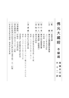 舒建中 傳真:八八六 電話:八八六 佛光山文化發行部 電話:八八六 高雄市大樹區興田里興田路一五三號 佛光出版社 慈惠法師(張優理) 佛光山宗務委員會 有版權 二 佛光大藏經編修委員會 星雲大師