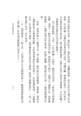 :「象君啊!你知道這株榕樹已有多久了?」 誰是最年長者,卻不知道。 生活,於我們殊不適當。我們頗想把年長者加以尊敬,對他行敬禮而度日。」但三者 。他們彼此不互相尊敬從順,至於違背普通的生活法則了。於是他們想道:「這樣地 事。 致敬吧。』他們查考出年長者來,對他行敬禮,後來便生於天道。」接著便講過去的 從順,違背了一般的生活法則而行動,與我們決不相宜。我們之中誰最年長,就對誰 ,那麼將來你們的行為究將怎樣呢?」 可是他昨夜得不到床座,就在樹根畔過夜。你們在目前已如是失卻尊敬,不知從順了 資格。比丘們啊!這裏的舍利弗是我的高弟,曾轉法輪,理應得比我次一等的床座, 者該奉以最好的床座、最好的水、