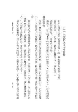 人。」父母因了婆羅門的話,便給太子命名為五武器太子。 ,他將在大王百年之後繼承王位,善於使用五種武器,因此得名,成為此閻浮提第一 好。 一日,父母招待八百婆羅門,將他們喜愛之物逐一贈送他們之後,便問這位太子的相 過去的事來。