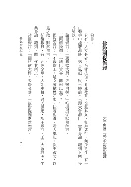 諸臣皆言:「國將欲大興,天賜金華。」臣樹提伽默然無言。 卻後數日,有一九色金華,大如車輪,遇天風起,吹王殿前。王即大會群臣,坐 提伽答言:「不敢欺王,是臣家拭體之巾,挂著池邊,遇天風起,吹王殿前,以 王問樹提伽:「諸臣皆喜,卿何以無言?」 諸臣皆言:「國將欲大興,天賜白 手巾挂著池邊,遇天風起,吹王殿前。王即大會群臣,坐共參論,羅列卜問,怪 昔有一大富長者,名樹提伽,倉庫盈實,金銀具足,奴婢成行,無所乏少。有一 佛言: