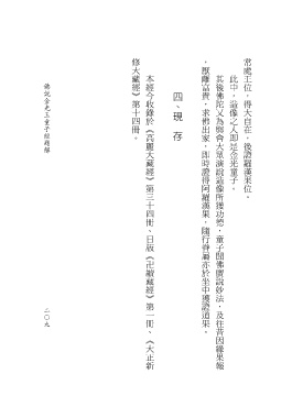 修大藏經》第十四冊。 ,厭離富貴,求佛出家,即時證得阿羅漢果,隨行眷屬亦於坐中獲證道果。 常處王位,得大自在,後證羅漢果位。 本經今收錄於《高麗大藏經》第三十四冊、日版《卍續藏經》第一冊、《大正新 其後佛陀又為與會大眾演說造像所獲功德,童子聞佛廣說妙法,及往昔因緣果報 此中,造像之人即是金光童子。 佛說金光王童子經題解 四、現 存 2 0 0 9 9
