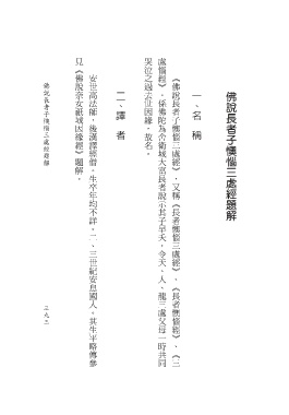 見《佛說奈女祇域因緣經》題解。 哭泣之過去世因緣,故名。 處惱經》。係佛陀為舍衛城大富長者說示其子早夭,令天、人、龍三處父母一時共同 安世高法師,後漢譯經僧。生卒年均不詳。二、三世紀安息國人。其生平略傳參 《佛說長者子懊惱三處經》,又稱《長者懊惱三處經》、《長者懊惱經》、《三 佛說長者子懊惱三處經題解 二、譯 一、名 佛說長者子懊惱三處經題解 者 稱 3 9 9 3 3