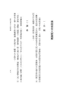 博學有才慧,受吳王孫權禮遇,尊為博士,輔導太子孫亮。 ,居於洛陽。通曉六國語言,飽覽群籍,時人稱之為智囊。漢獻帝末年避亂入吳,以 記其往生極樂,後成佛道,故名。 、離散而有成滅,又為阿難解說此老女人何以聞法即悟、貧窮困苦之過去世因緣,並 支謙優婆塞,三國吳譯經家。生卒年均不詳。三世紀大月氏人。隨族人遷至東土 《佛說老女人經》,又稱《老女經》。係佛陀為貧窮老女人講說諸法以因緣和合 佛說老女人經題解 二、譯 一、名 佛說老女人經題解 者 稱 5 7 7