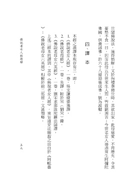 佛說老女人經題解 《佛說老母女六英經》,一卷,劉宋求那跋陀羅法師譯。 《佛說老母經》,一卷,失譯,附於宋(劉宋)錄。 《佛說老女人經》,一卷,吳支謙優婆塞譯。