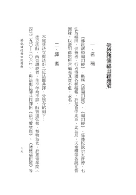 西元二九 因緣,以證明佛陀所言福報真實不虛,故名。 法為福田,供養者、行者得獲各種福報,於是會中比丘、比丘尼、天帝釋等各說往昔 法立法師,西晉譯經僧。生卒年均不詳。師智道弘拔,悟物為先。於惠帝年間( 本經係法立與法炬二位法師共譯,分別介紹如下: 《佛說諸德福田經》,略稱《諸福田經》、《福田經》。係佛陀說示五淨德、七 佛說諸德福田經題解 ○ 二、譯 一、名 佛說諸德福田經題解 |三 ○ 六年),與法炬法師共同譯出《法句譬喻經》、《諸德福田經》等 者 稱 7 9 9